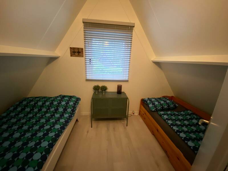 In de andere staat een twijfelaar van 120x200cm en een uitschuifbare twee eenpersoonsbedden.
